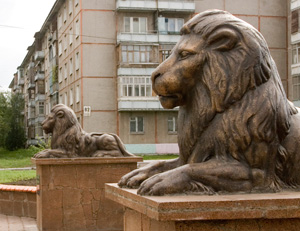 7 августа 2007 года в Кировском районе открылся сквер  «Школьный».  Автор  львов – красноярский скульптор Константин Зинич. Каждая скульптура весит около 100 кг