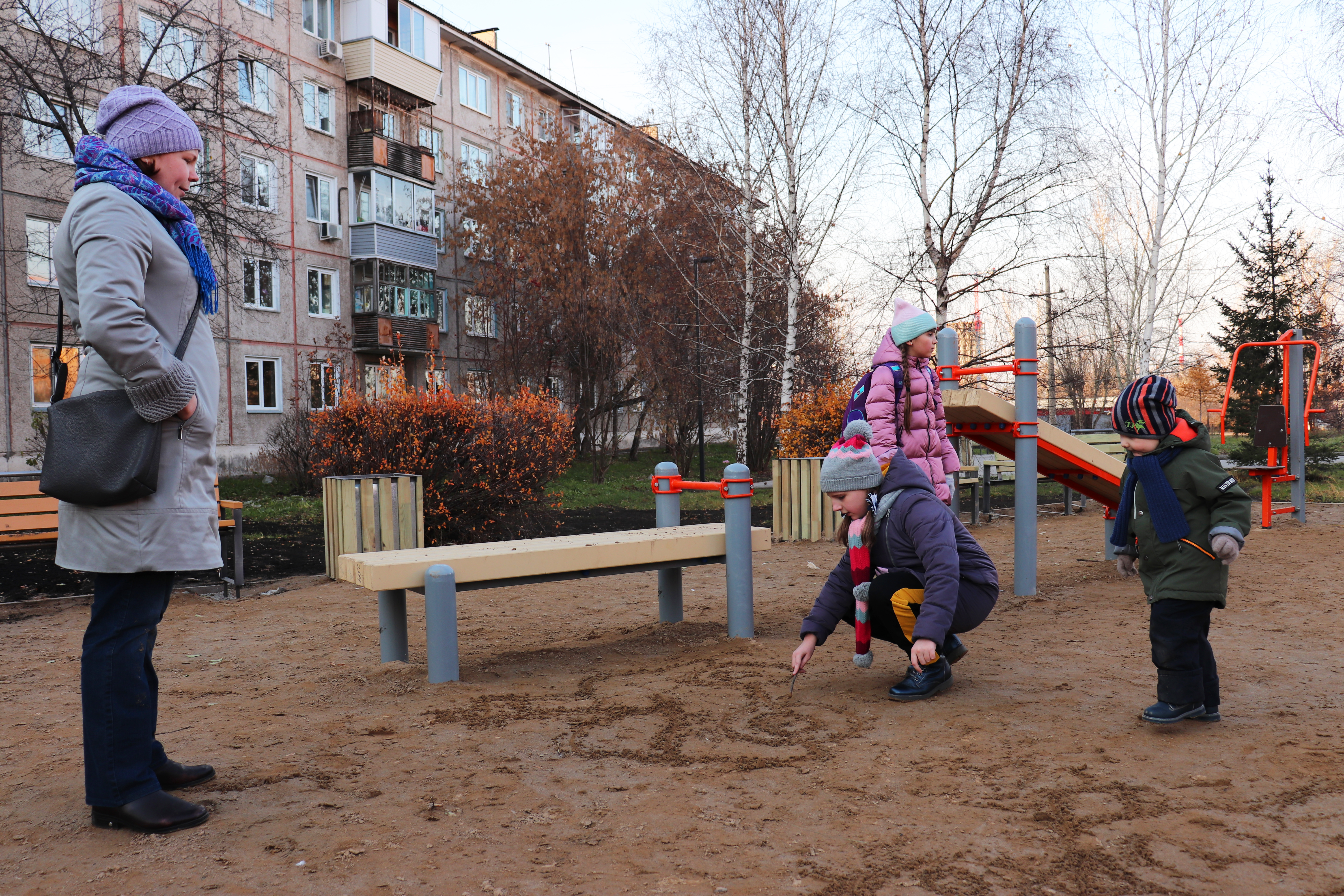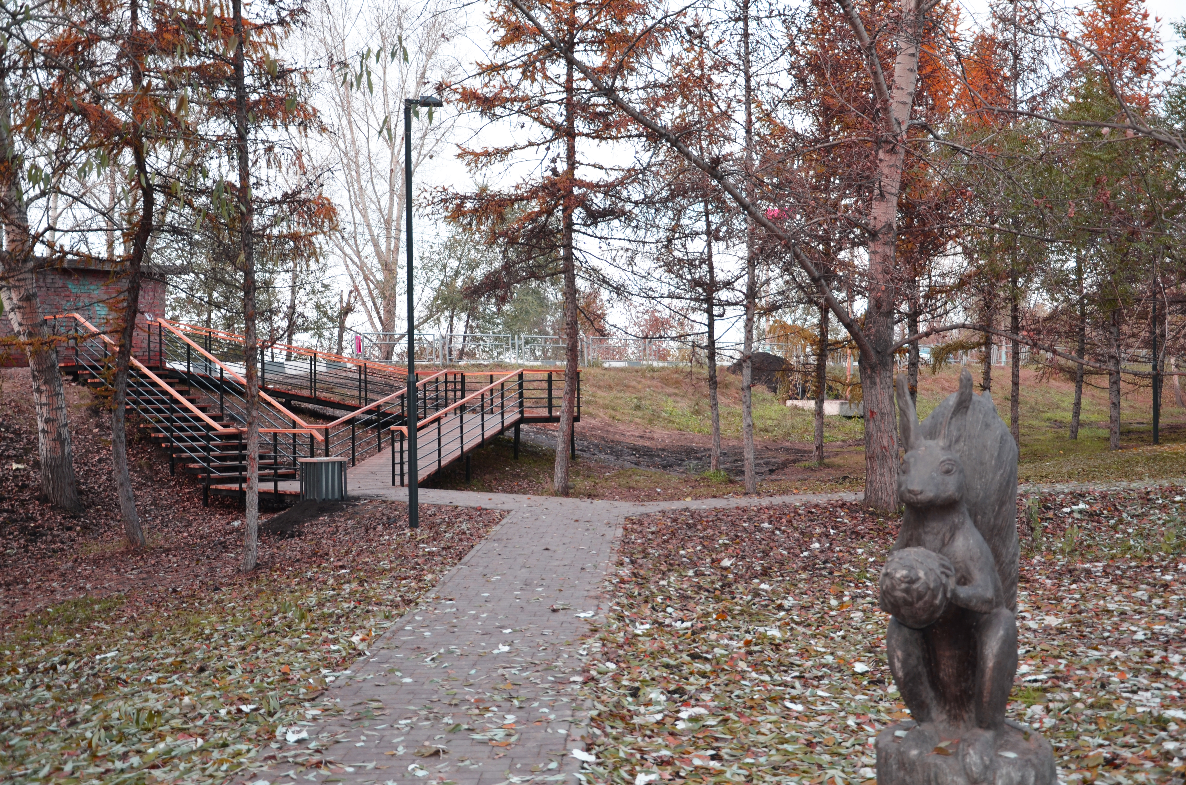 В 2018 году Мемориальный комплекс пополнился скульптурной композицией, посвященной красноярцам – строителям послевоенной мирной жизни. Композиция представляет собой женщину с ребенком, держащую в руке голубя. По инициативе руководителя администрации района скульптура, которая долгое время находилась на территории химкомбината была взята и передана на реставрацию. Реализация проекта стала возможной благодаря генеральному директору группы строительных компаний «Арбан» В.Д. Попову.