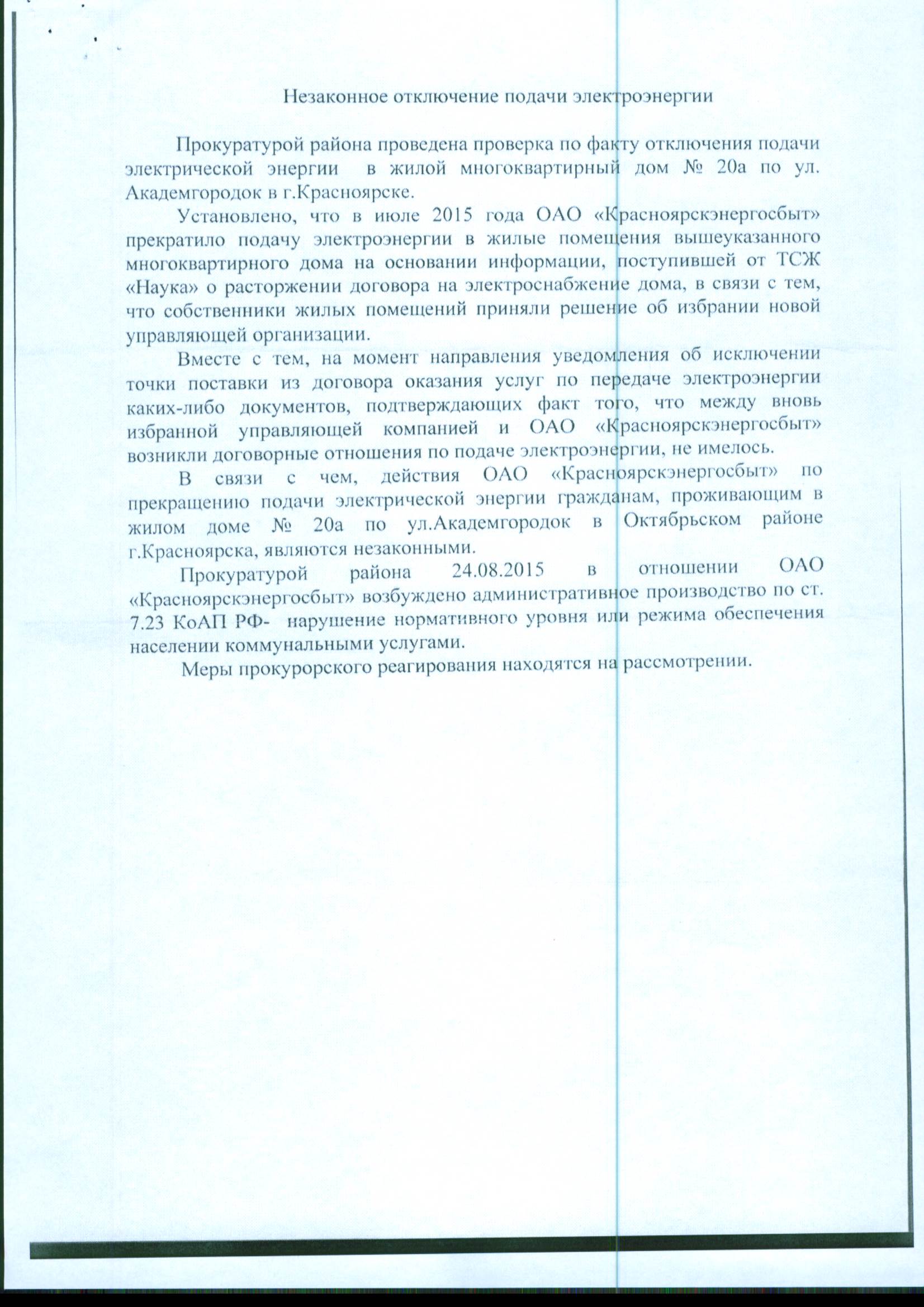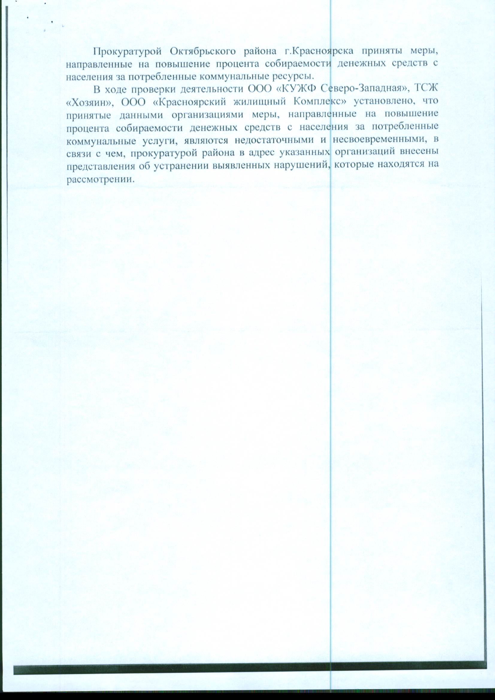 Прокуратура Октябрьского района г. Красноярска провела проверку  по обращению местного жителя.