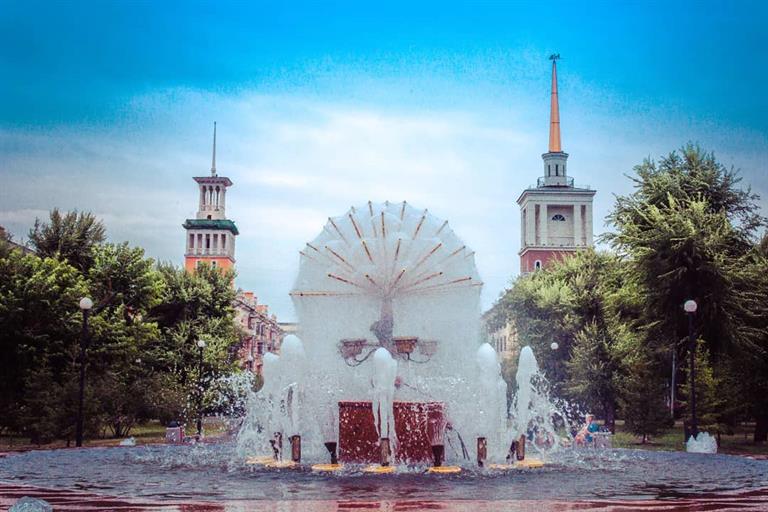 Каскадный фонтан «Лунный свет» был открыт в 2000 году на ул. Копылова в районе дома № 44. Композицию на тему Луны в этом месте подчёркивает не только само расположение водных каскадов, но и камень в центральной группе фонтана. Это цельный кусок гранита, привезённый с карьера. На одной стороне камня высечена Луна, а на другой – месяц. Этот рисунок скульптору подсказала сама структура камня, и автор воплотила её в жизнь. Фонтан «Лунный свет» – одна из самых оригинальных композиций Железнодорожного района.