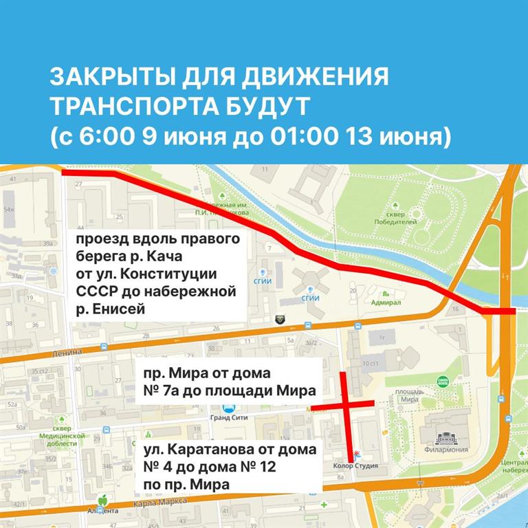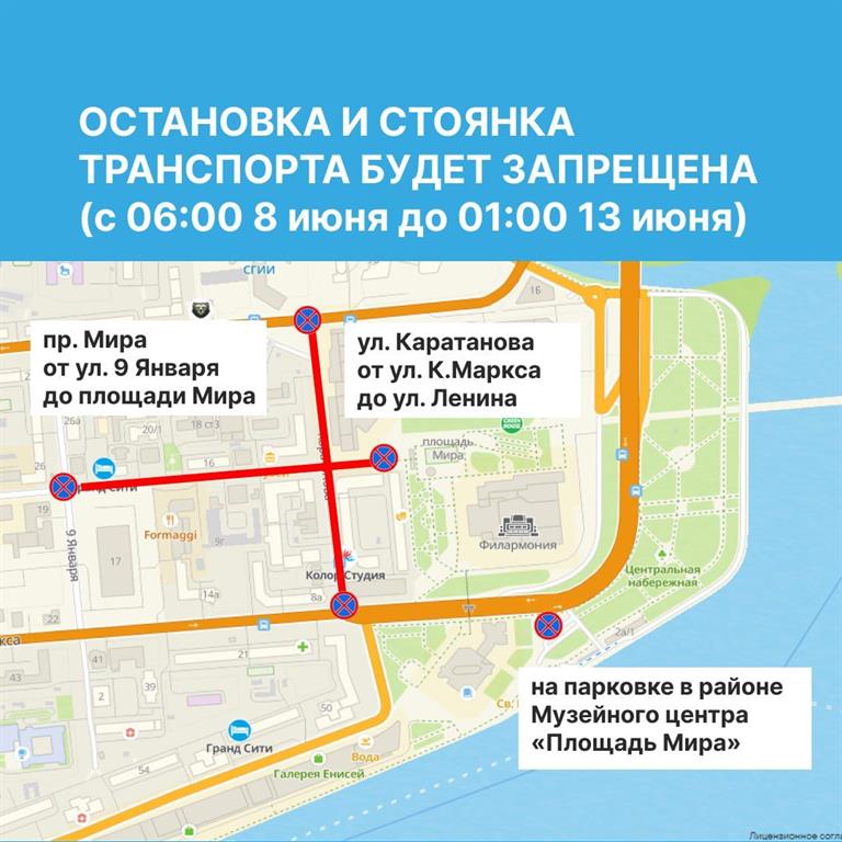 В центре города движение и парковка автомобилей будут запрещены уже с 6:00 8 июня до 01:00 13 июня на улицах Каратанова и проспекте Мира от улицы 9 января до площади Мира. С 9 июня также для движения транспорта закроют проезд вдоль правого берега Качи, а съезд автомобилей к Центральной набережной с улицы Карла Маркса временно запретят. Список парковок для личного транспорта можно посмотреть здесь.
