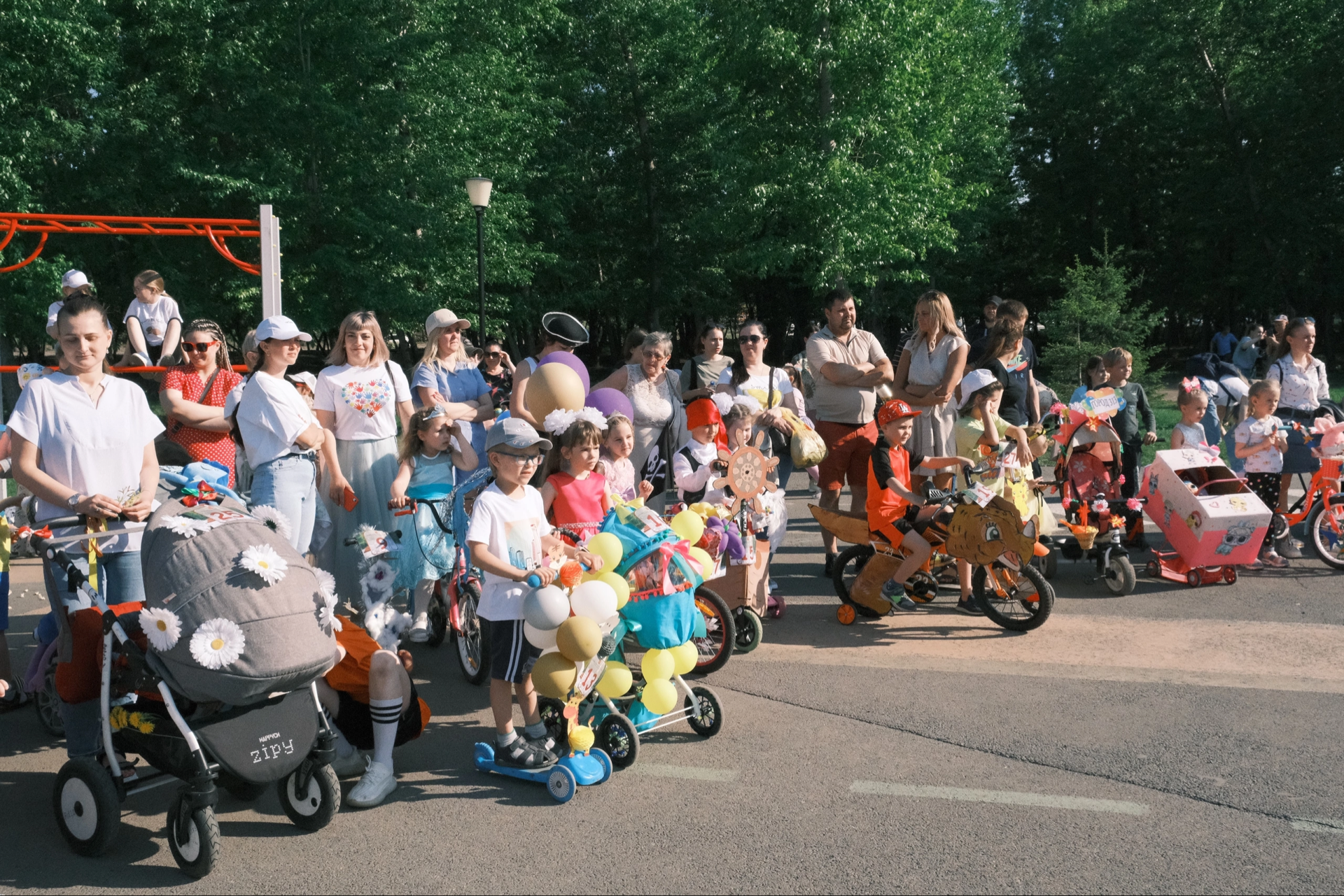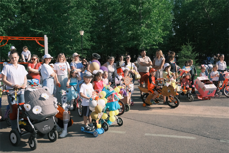 Отдельное место в колонне займут участники районного конкурса «Дети рулят». Им предстоит креативно оформить коляски, велосипеды и самокаты, используя разнообразные аксессуары. Детский вид транспорта может быть выполнен в сказочной тематике, в виде животных или представлять собой любой вид транспортного средства (автобуса, корабля, военной техники и т.д.)