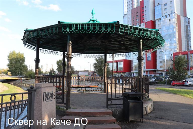 Сквер, расположенный вдоль берега реки Кача по переулку Речной, является местом притяжения для жителей всех окрестных домов, этот живописный уголок – любимое место для прогулок и общения с природой, здесь люди кормят уток и голубей, катаются на роликах, самокатах и велосипедах, прогуливаются, занимаются спортом и отдыхают на скамейках и в беседках. Некогда очень хорошо благоустроенное пространство уже не отвечает требованиям времени и требует серьезного обновления.