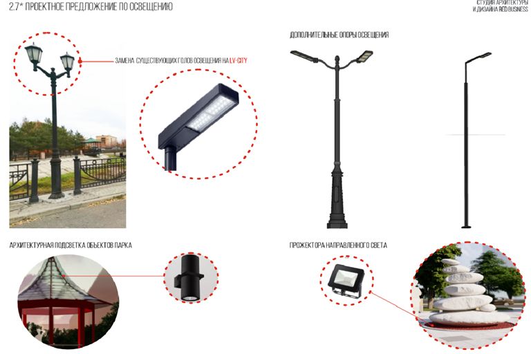 Архитекторы, работавшие над первоначальной концепцией пространства, предложили оформить сквер вдоль переулка Речной яркими красными акцентами, они должны были появиться и в опорах нового моста, и в оформлении беседок, и в малых архитектурных формах.