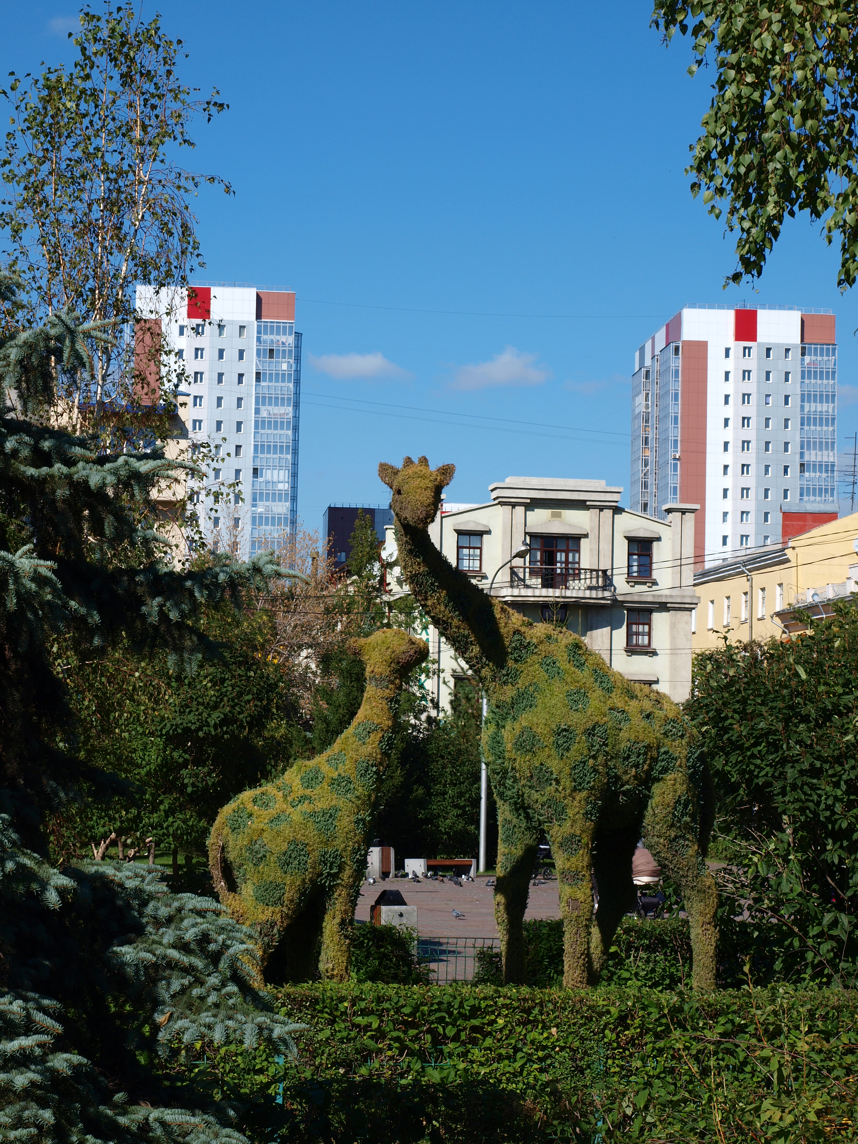 В городе сохранились и фигуры вертикального озеленения. Впервые они появились на улицах в 2001г. Сегодня это привычный элемент городского дизайна, который, тем не менее не становится менее любимым жителями. Сейчас в Красноярске  установлены 53 объемные фигуры. Среди них  цветочные вазы, шары и грибки, этажерки, цветочные горки. Но самой большой любовью жителей и гостей города пользуются, конечно, крупногабаритные цветочные скульптуры. Сегодня таких 17. Это семейства слонов (ул. Копылова), черепах (Советский район), медведей (Советский район), лосей (Ленинский район). А также  шар в сквере «Московский тракт», крокодил в Ленинском районе, символы города – пушка и часовня (граница Кировского и Ленинского районов) и другие.