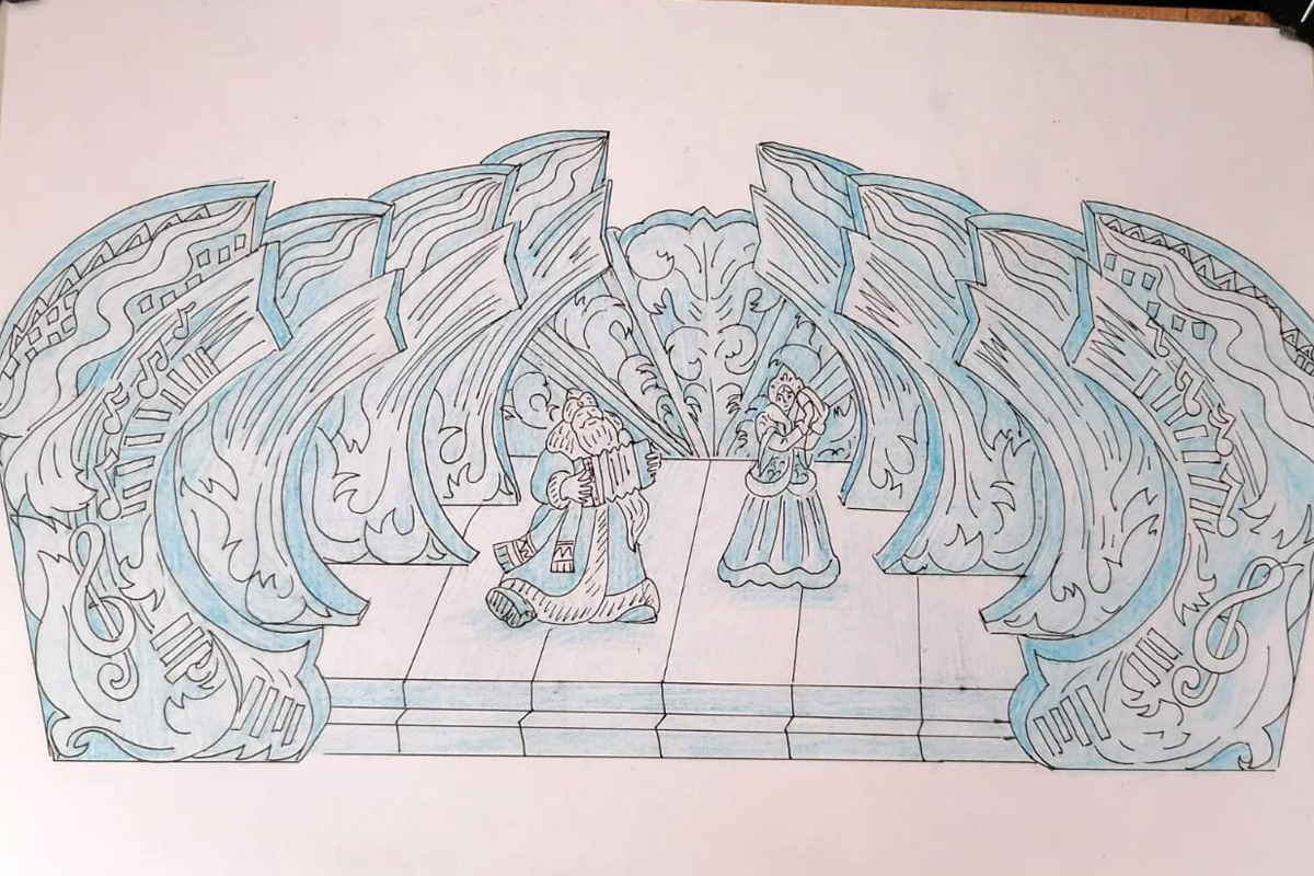 В сквере Кировский горожан будут ждать скульптуры Деда Мороза и Снегурочки на ледяной сцене и чаша изо льда с музыкальными инструментами.