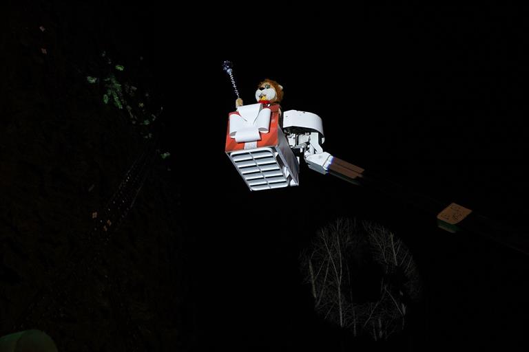 В этом году Красноярск отказался от масштабных развлекательных программ и фейерверка в честь Нового года, но специально для ребятишек провели небольшую праздничную церемонию. Дед Мороз, Снегурочка и другие сказочные персонажи поздравили красноярцев с наступающим праздником. Символ Красноярска – лев – поднялся на специальной вышке к ёлке и под общий счёт вместе с хороводом зажег её огни, чтобы дать символический старт новогодним торжествам.