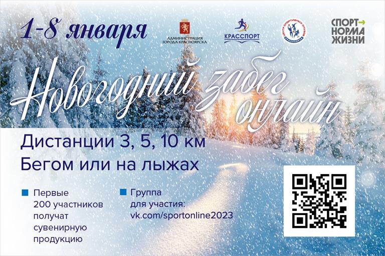 С 1 по 8 января в Красноярске пройдет «Новогодний забег» в формате онлайн. Участники смогут преодолеть одну из предложенных дистанций в удобные для них даты, а результатами поделятся в социальной сети «ВКонтакте». Участие могут принять все красноярцы вне зависимости от возраста.
