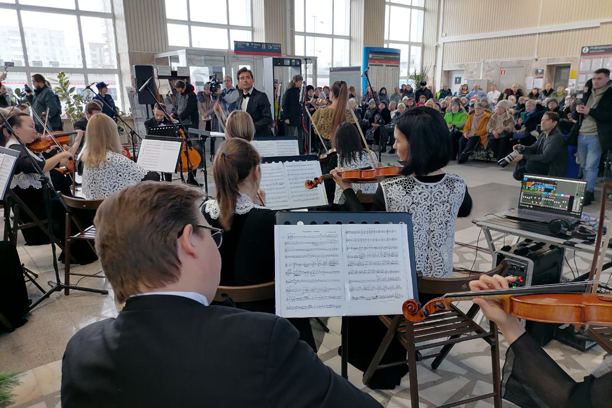 На вокзале станции «Енисей» прошел концерт Красноярского камерного оркестра. Выступление состоялось в рамках спецпроетка «Музыкальное путешествие по железнодорожным вокзалам» Зимнего суриковского фестиваля. «Серенаду для струнных» Петра Чайковского, «Венгерский танец №5» Иоганнеса Брамса, музыку Вольфганга Амадея Моцарта слушали не только пассажиры, ожидающие своего поезда, но и жители, приехавшие из других районов города.