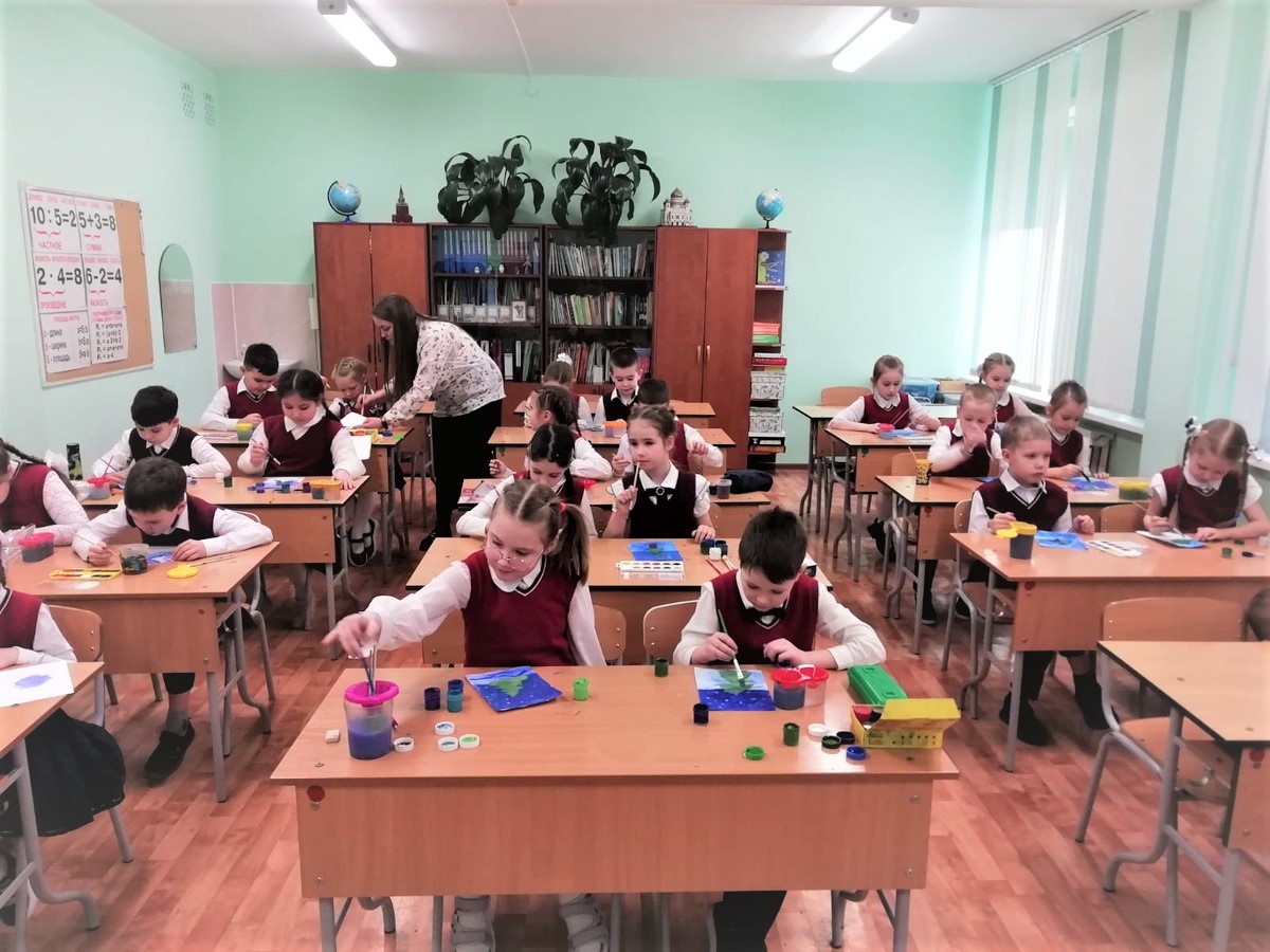 На уроке «Суриков. Сибирский характер» ученики 1 классов школы №6 Свердловского района познакомились с жизнью и творчеством художника, ребята сравнили детские обязанности по дому того времени и современного ребёнка, детские забавы тех лет и сегодняшнего дня. Творческим заданием для ребят стал «зимний лихой этюд».