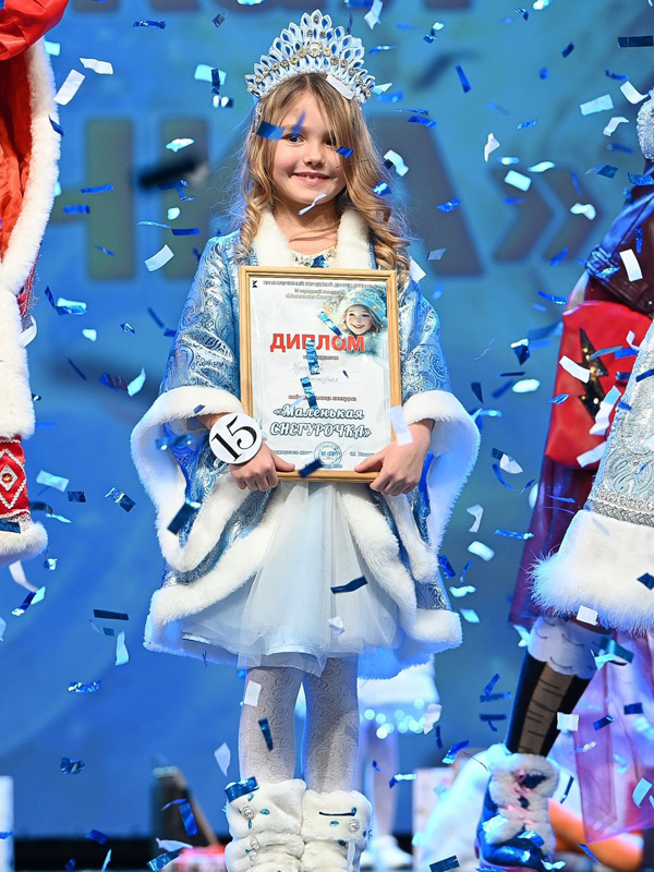 Маленькой Снегурочкой стала 6-летняя Виктория Федосеева. Девочка покорила жюри своей смелостью и артистизмом и набрала наибольшее количество баллов. Виктория – воспитанница детского сада № 140. Занимается скалолазанием, конным спортом, играет на фортепиано, рисует, увлекается шахматами, а еще поёт и танцует. Победительница получила диплом, корону и подарки. В специальной номинации - «Сказочная Снегурочка» - отметили Стешик Дарину.