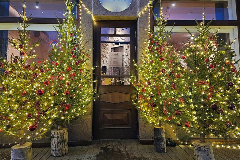 Один из ярких претендентов на звание «Лучшей зимней территории предприятия и офиса» – кафе «Шаурмидзе» на пр. Мира, 37. Там не только оформили прилегающую территорию украшенными ёлками и повесили гирлянды, но и обустроили в одной из витрин целый новогодний игрушечный городок. Конкуренцию этому заведению составят рестораны «Генацвале» и «Fresco Asia», гастроном «Красный Яр» и другие.