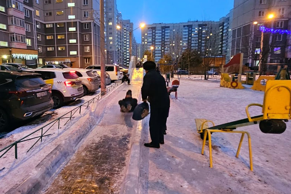 Некоторые управляющие организации, помимо праздничного украшения дворов, также построили горки для детей и сертифицировали их в соответствии с требованиями к ледовым аттракционам. Такую горку оборудовала, например, группа компаний «Покровские ворота» на ул. Дмитрия Мартынова, 24.