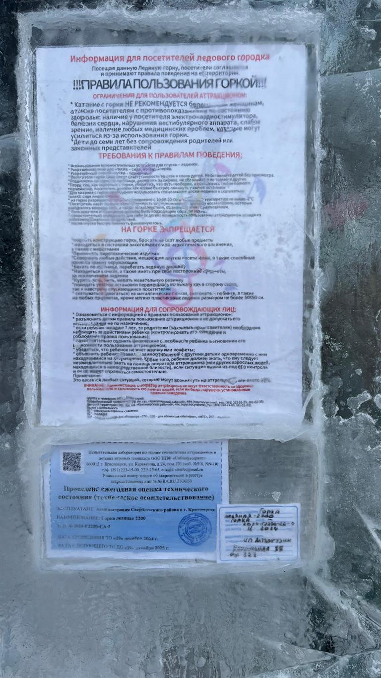 Отметим, все муниципальные органы, в чью зону ответственности входит эксплуатация ледовых городков в Красноярске, уже заключили договоры с порядными организациями, которые будут следить за состоянием ледяных горок и правильным их использованием. В их обязанности входит ежедневный контроль состояния ледяного выката, ступеней, если они имеются, бортиков, соблюдения горожанами правил пользования сооружением и так далее. В случае необходимости доступ на горки будет временно приостанавливаться для проведения восстановительных работ и дополнительной заливки водой.
