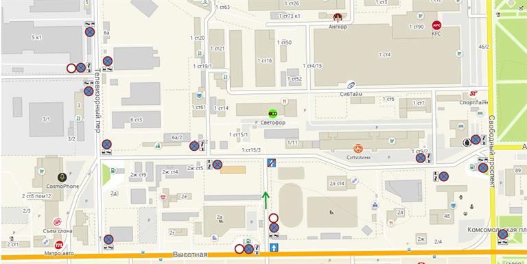 - въезд к гипермаркету «Лента» (ул. 9 Мая, 62) со стороны улицы будет запрещен, там появятся соответствующие дорожные знаки (3.1 «Въезд запрещен»).