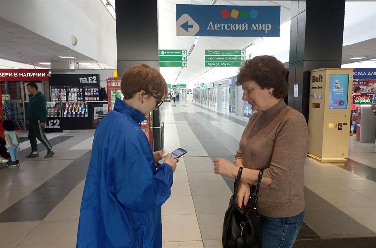 До наступления тёплой погоды волонтёры работали в торговых центрах. Сейчас консультируют на уличных площадках во всех районах города: