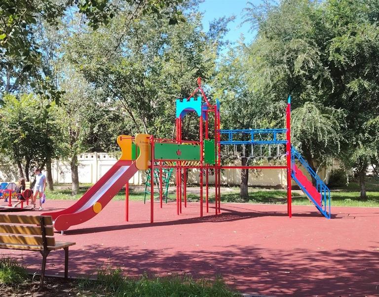 На улице Астраханская, 1 сделали деревянные качели, верёвочный спортивный комплекс, игровую площадку в виде лесной избушки, информационную доску «В гостях у сказки». Особо выделяется зона для пикника с деревянным столом и стульями.