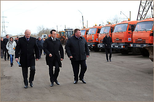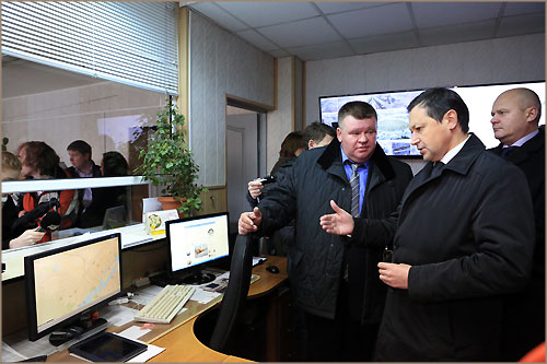 Мэр  осмотрел парк специализированных машин, поинтересовался количеством запасов песка и соли.  Эдхам Акбулатов подробно ознакомился с системой видеонаблюдения за состоянием проезжей части на крупных городских магистралях и с использованием современных информационных технологий специализированными бригадами.