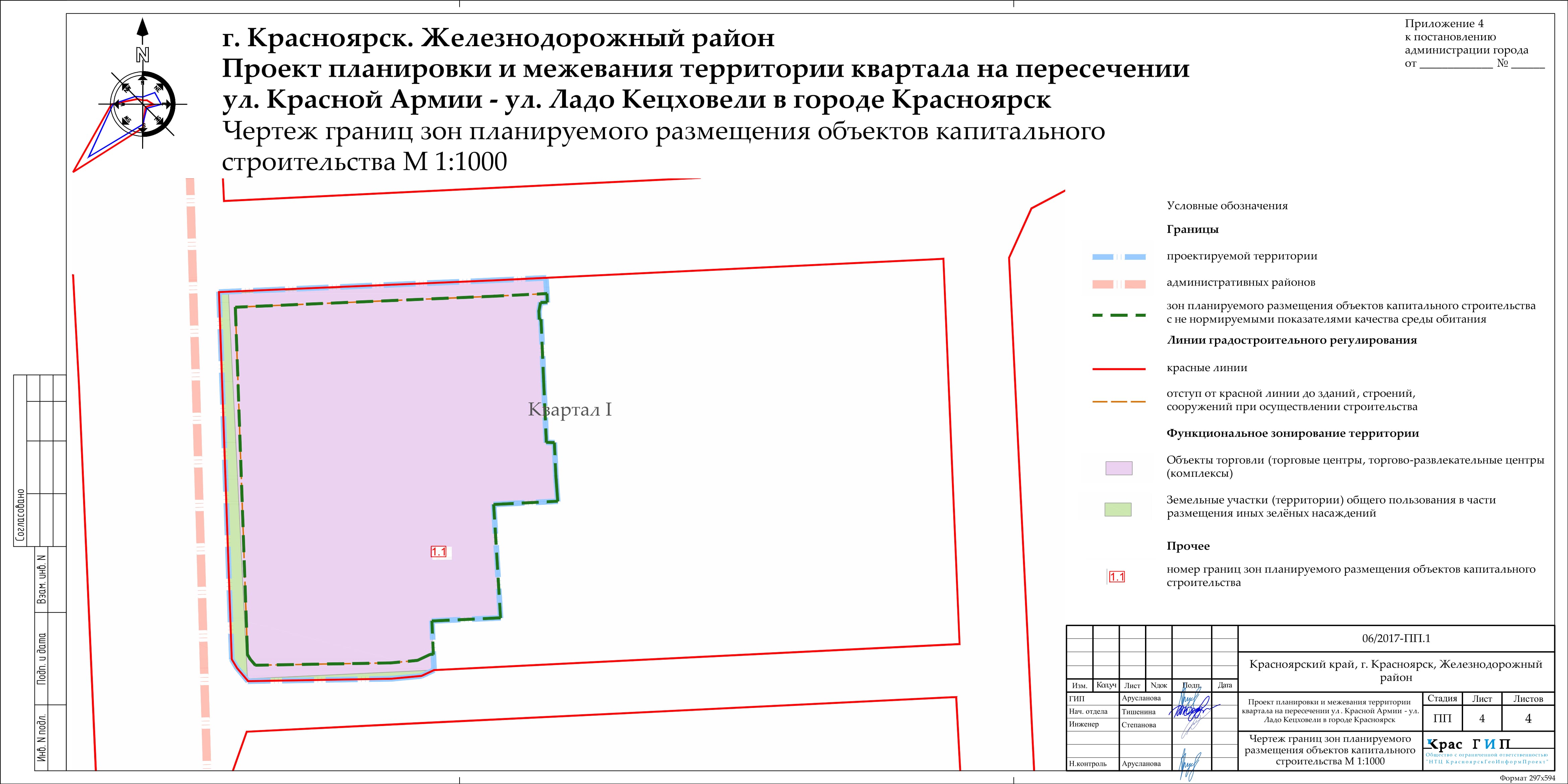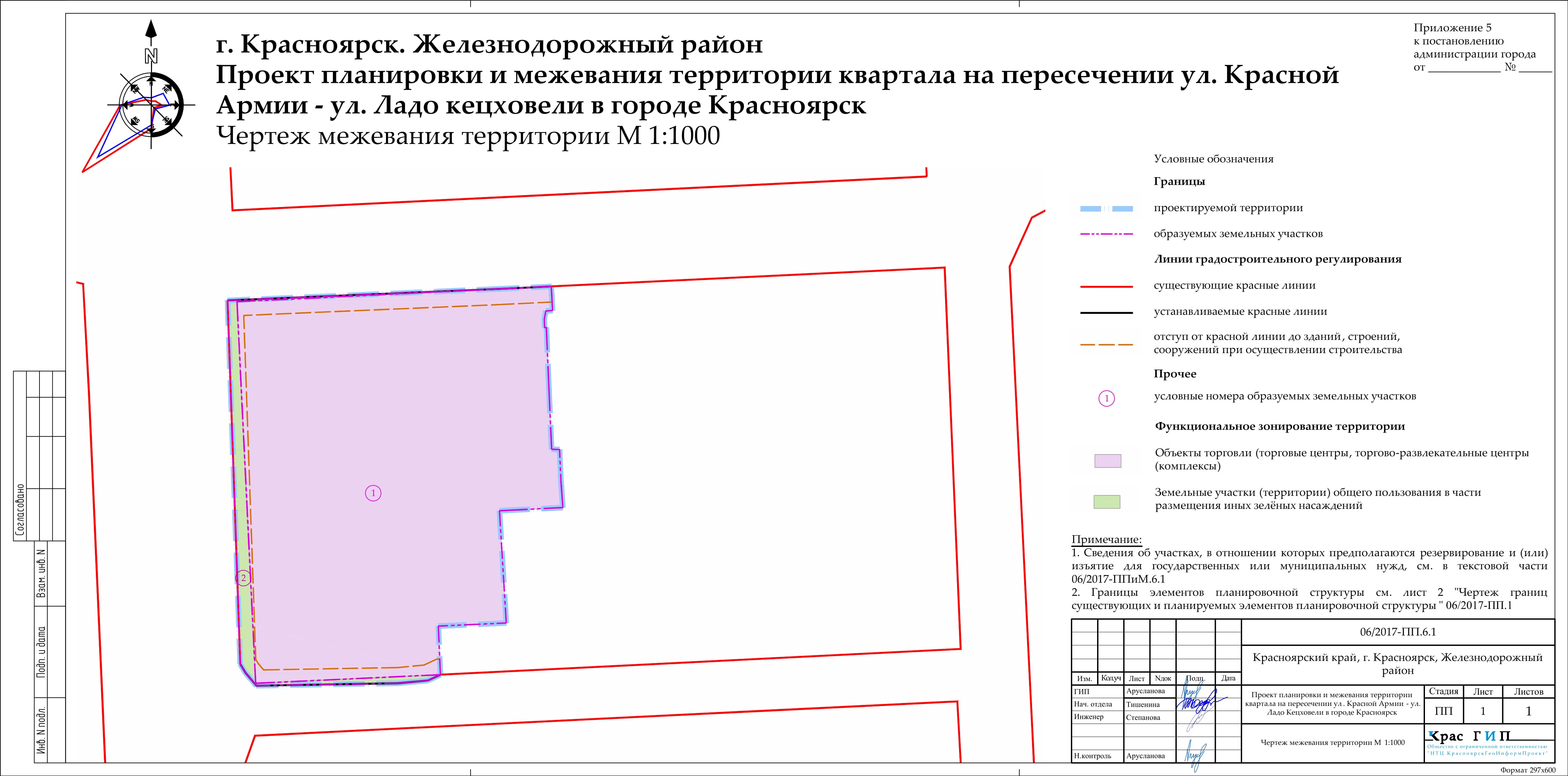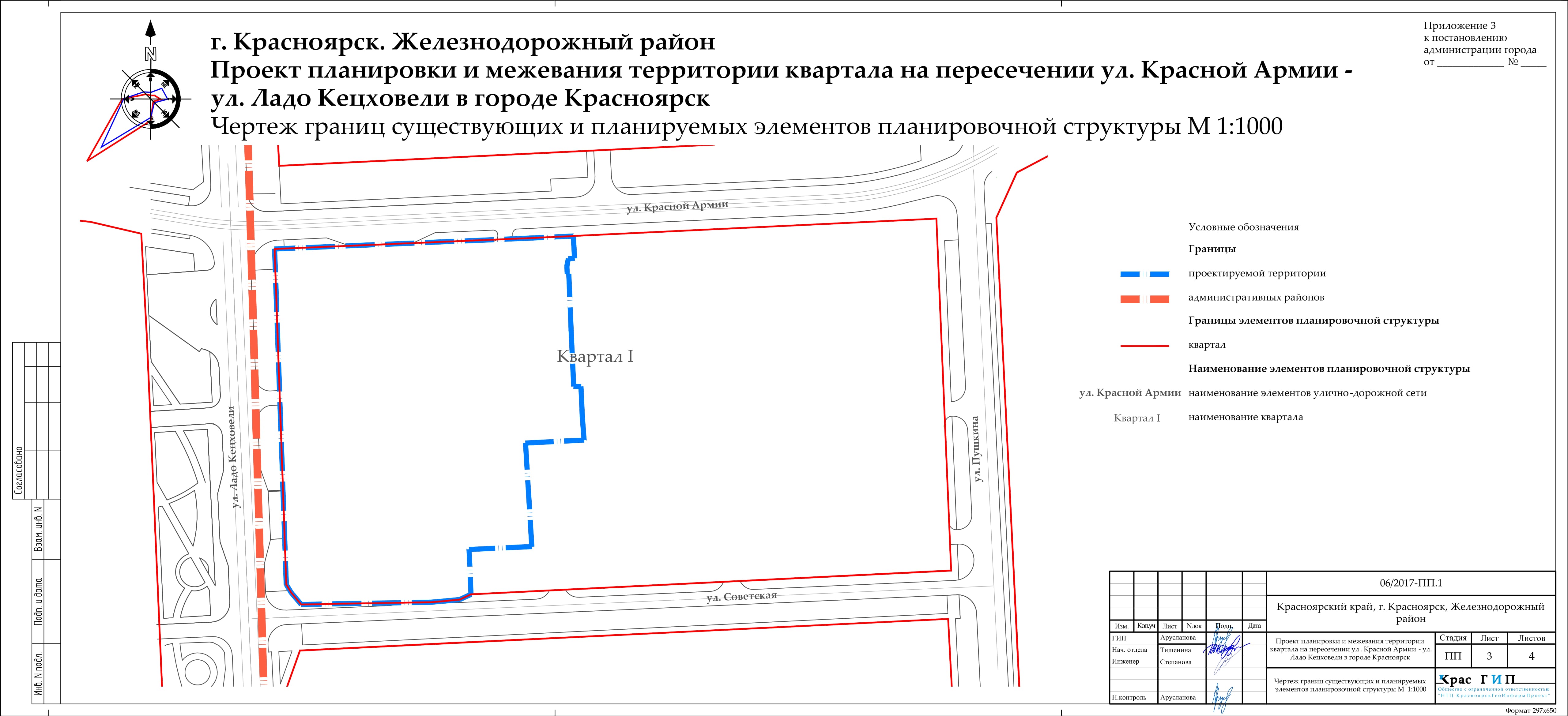 Об утверждении проекта планировки и межевания территории квартала на пересечении ул. Красной Армии – ул. Ладо Кецховели в городе Красноярске