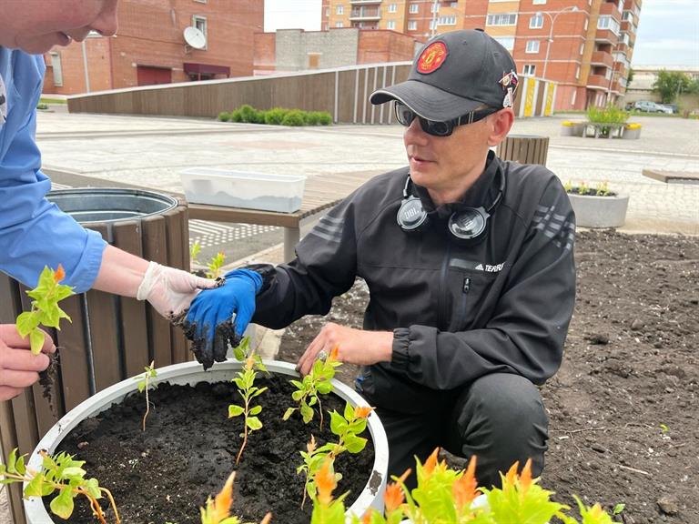 This season's landscaping campaign began in the Vodometny lane of the Sverdlovsky district in the Svetly public garden. This is an inclusive platform for people with disabilities, including those with visual impairments.