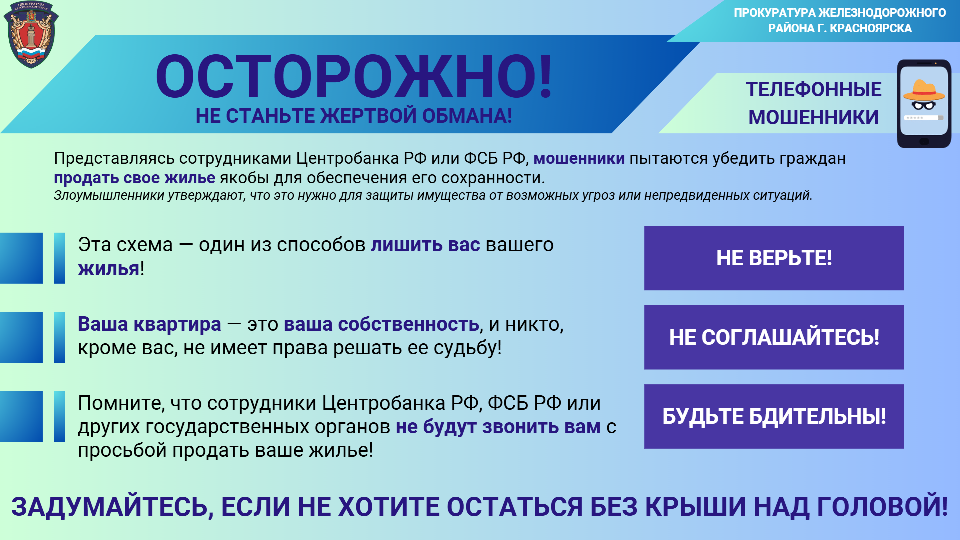 Если у вас есть вопросы по данной теме, то вы можете записаться на приём в рабочие дни в прокуратуре Железнодорожного района по адресу: г. Красноярск, ул. Ладо Кецховели, д. 18а, тел. 8(391)299-16-00, а также в прокуратуре Красноярского края по адресу: г. Красноярск, пр. Мира, д. 32, тел. 8(391)222-46-62 с 9 до 18 часов (обед с 13:00 до 13:45).