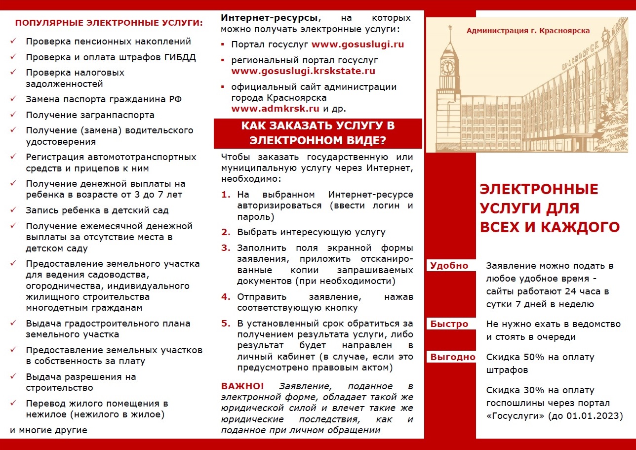 - в электронной форме через официальный сайт администрации города (www.admkrsk.ru/Муниципальные услуги/Реестр муниципальных услуг);