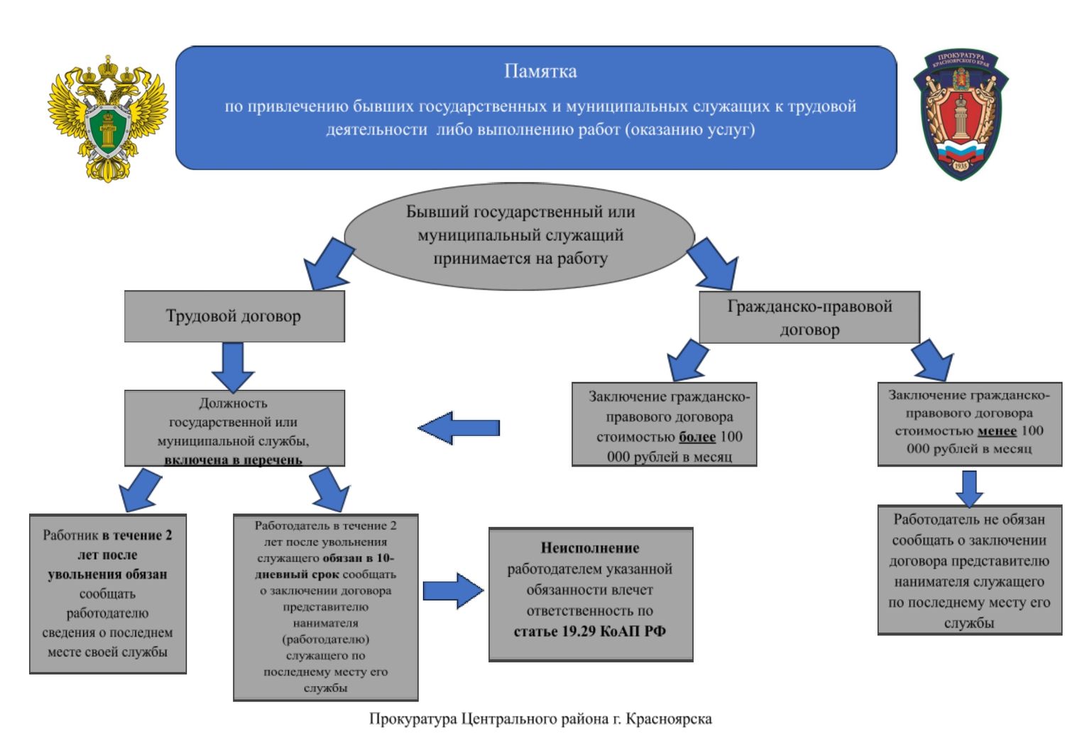 Памятка по привлечению бывших государственных и муниципальных служащих к трудовой деятельности либо выполнению работ (оказанию услуг)