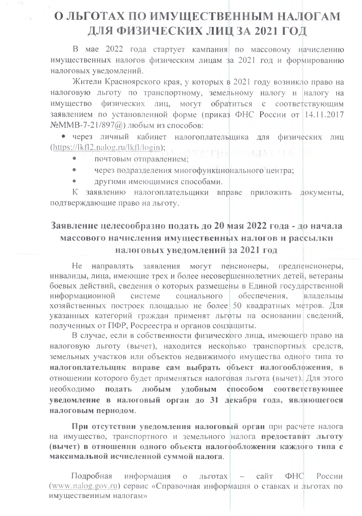 Межрайонная Инспекция федеральной налоговой службы № 24 по Красноярскому краю сообщает:
