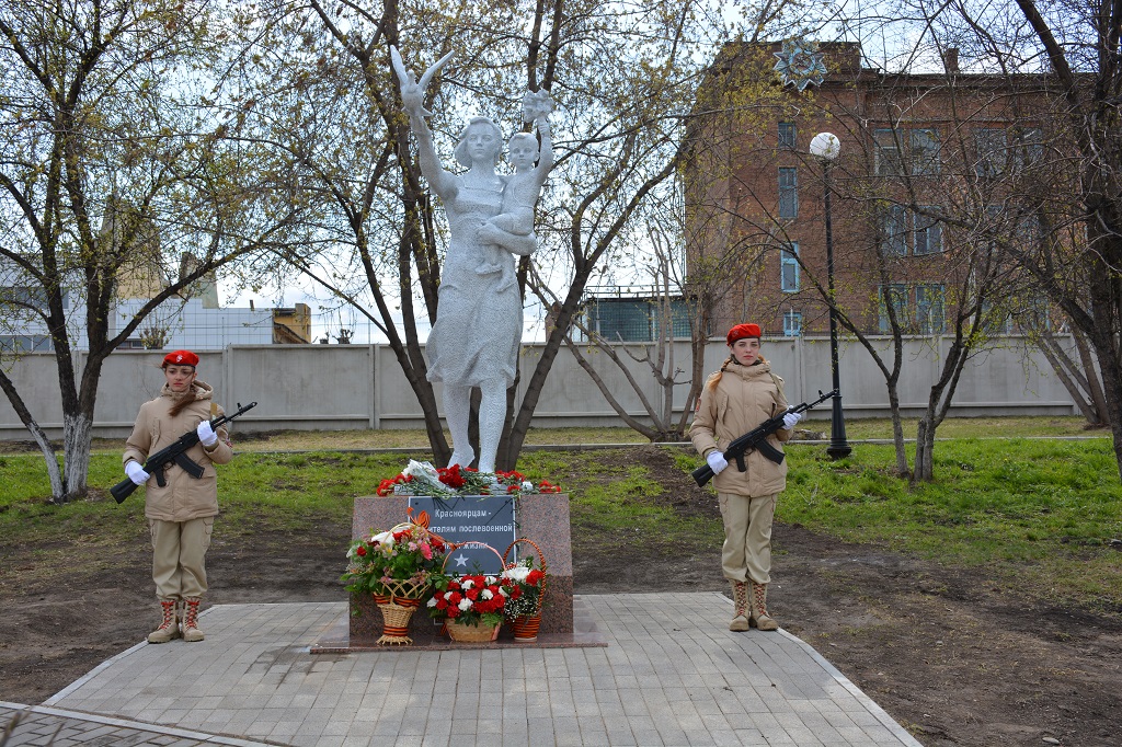 В 2018 году Мемориальный комплекс пополнился скульптурной композицией, посвященной красноярцам – строителям послевоенной мирной жизни. Композиция представляет собой женщину с ребенком, держащую в руке голубя. По инициативе руководителя администрации района скульптура, которая долгое время находилась на территории химкомбината была взята и передана на реставрацию. Реализация проекта стала возможной благодаря генеральному директору группы строительных компаний «Арбан» В.Д. Попову.