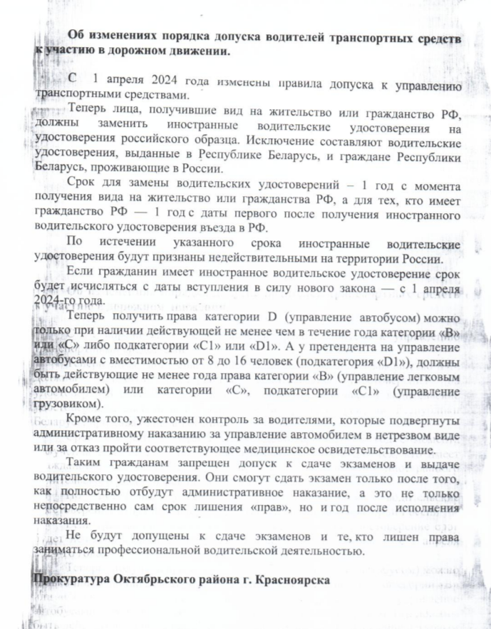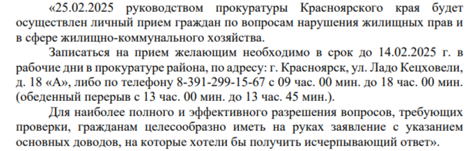Прокуратура Октябрьского района г. Красноярска провела проверку  по обращению местного жителя.