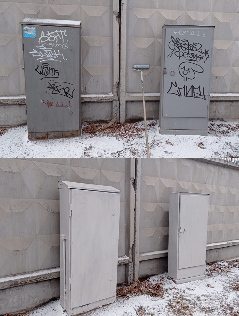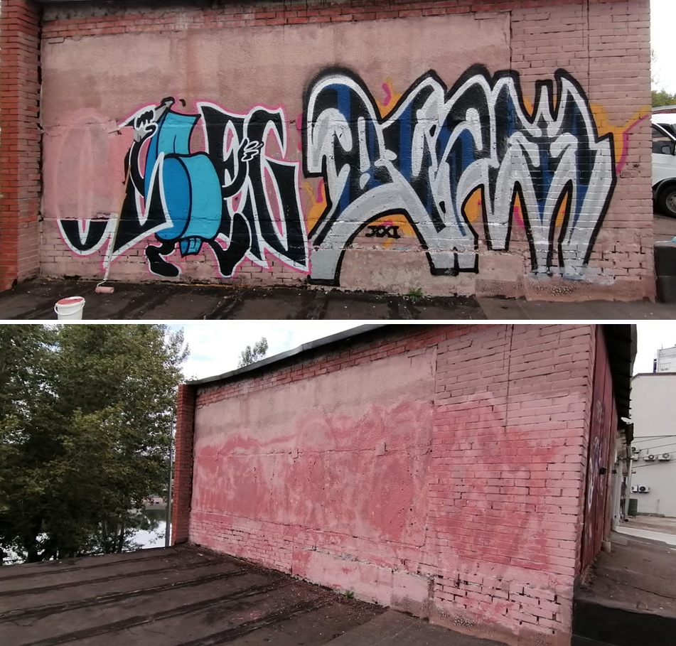 граффити на фасадах, объявлений и несанкционированной рекламы и восстановлении