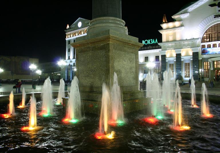 Каскадный фонтан «Лунный свет» был открыт в 2000 году на ул. Копылова в районе дома № 44. Композицию на тему Луны в этом месте подчёркивает не только само расположение водных каскадов, но и камень в центральной группе фонтана. Это цельный кусок гранита, привезённый с карьера. На одной стороне камня высечена Луна, а на другой – месяц. Этот рисунок скульптору подсказала сама структура камня, и автор воплотила её в жизнь. Фонтан «Лунный свет» – одна из самых оригинальных композиций Железнодорожного района.
