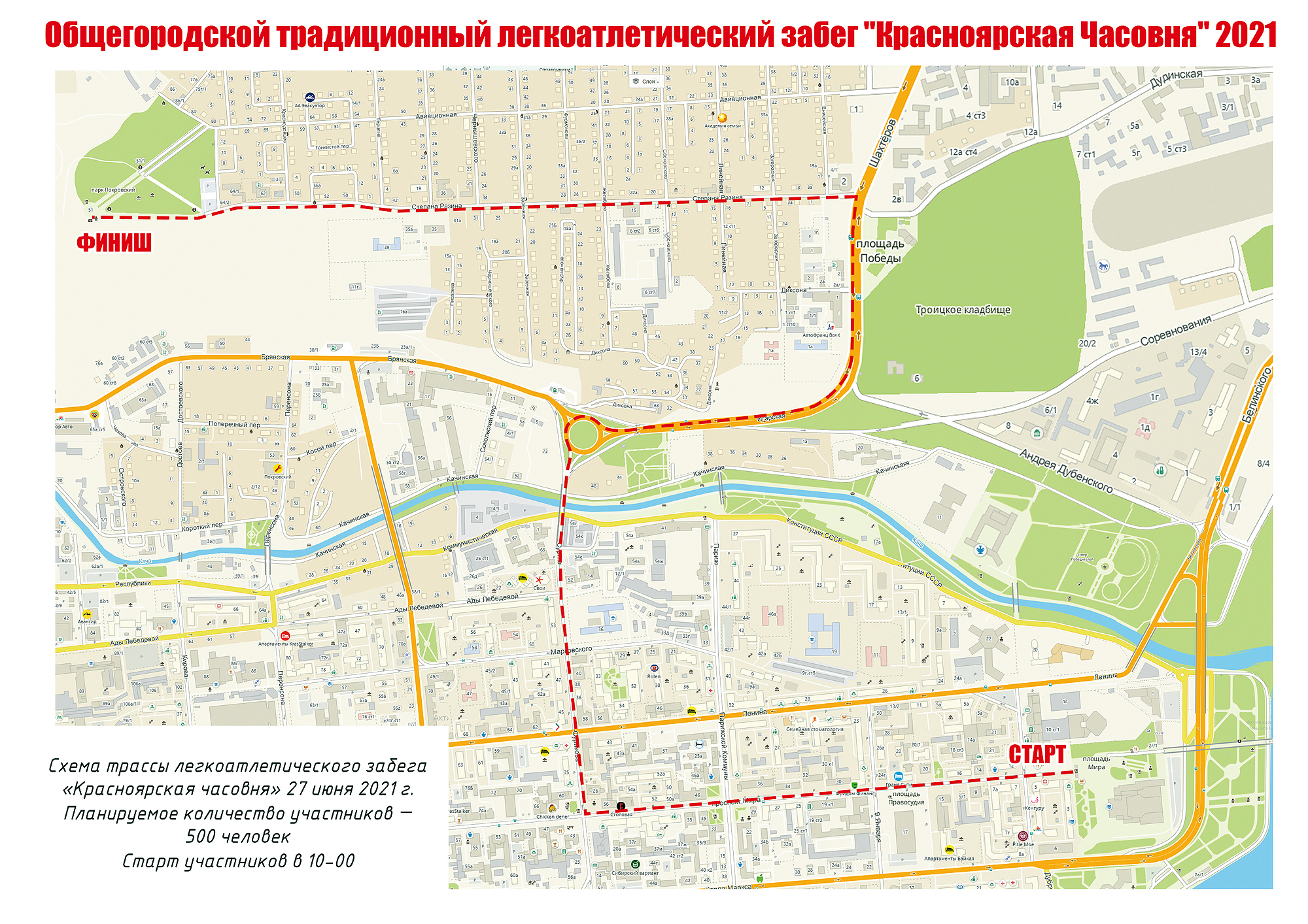 27 июня в Красноярске в рамках празднования Дня города состоится традиционный легкоатлетический забег «Красноярская часовня». Маршрут соревнований пройдет по историческим и знаковым местам левобережья.