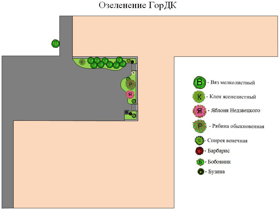 Планируется выполнить устройство парковочной площадки в асфальтобетонном исполнении; провести посадку деревьев, а также организовать санитарную обрезку зеленых насаждений.