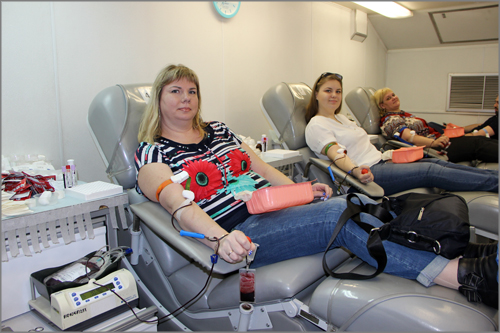 В донор-мобиле, который работал у администрации Железнодорожного района, все желающие могли сдать кровь, а также пройти обследование (узнать группу крови и резус-фактор).