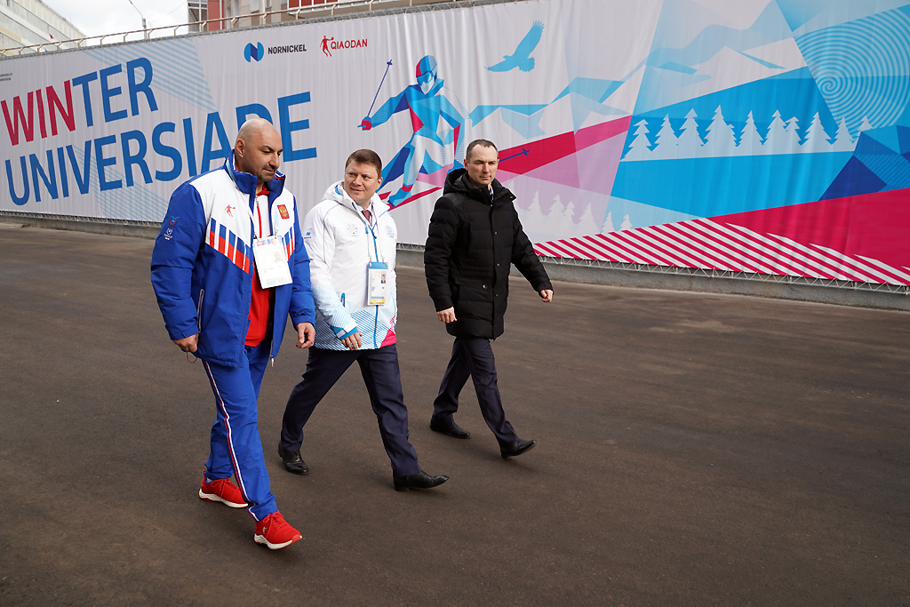 Сергей Ерёмин посетил Деревню универсиады и ознакомился с условиями проживания и отдыха участников Всемирных зимних игр-2019. Экскурсию для главы города провёл мэр Деревни Максим Орешников. Также её участником стал руководитель российской команды Сергей Сейранов.