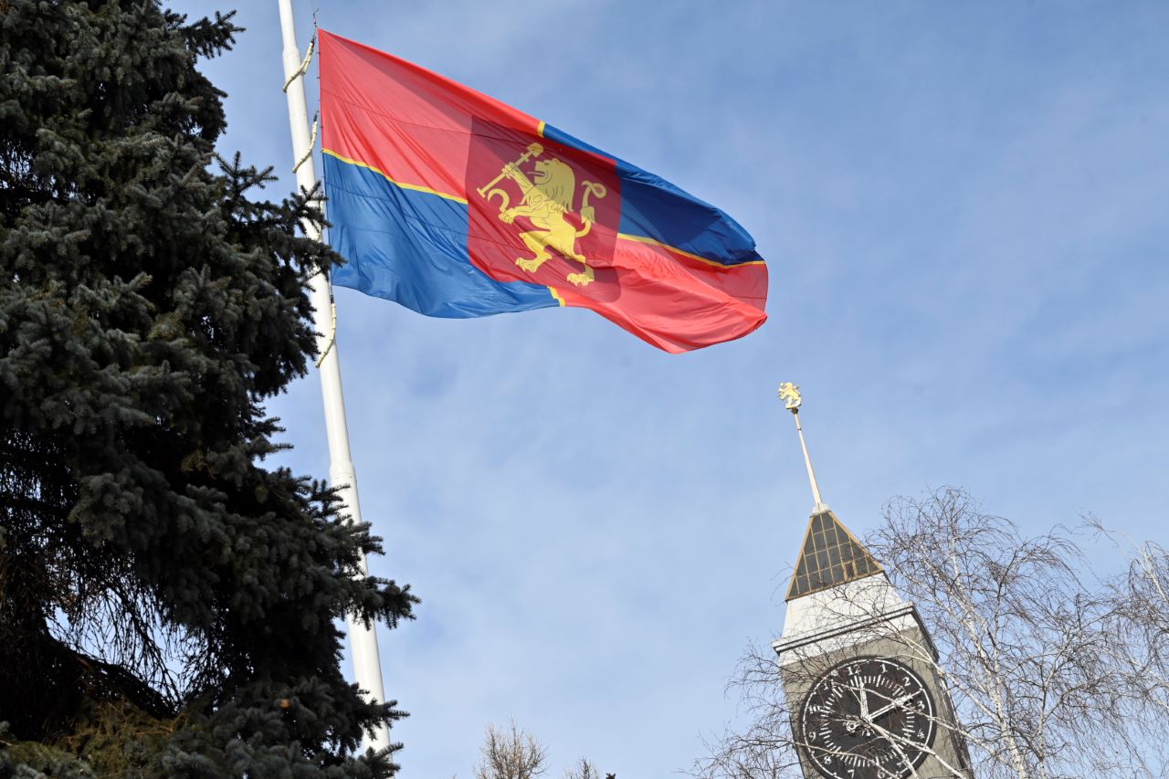 В честь годовщины официального открытия Универсиады-2019 над площадью у городских часов поднят флаг Красноярска