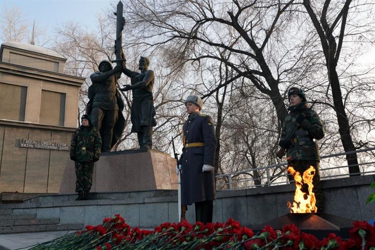 В ознаменование 80-й годовщины разгрома немецко-фашистских войск в Сталинградской битве красноярцы возложили венки и цветы к Вечному Огню на Мемориале Победы.