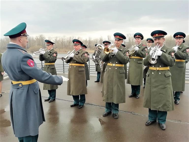 Реконструкция сопровождалась живой музыкой оркестра под руководством дирижера военного гарнизона Алмаса Салахутдинова.