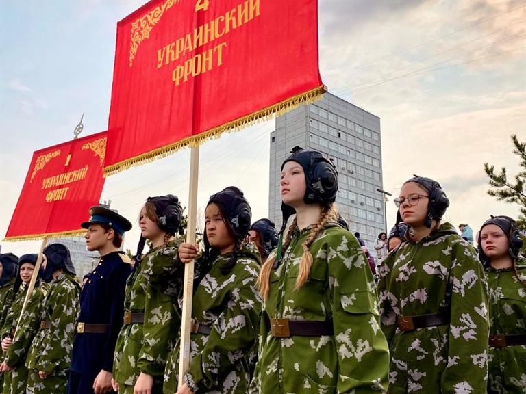 Даже погода повторила тот самый день 45-го – на улице было прохладно и пасмурно. Однако это не помешало школьникам гордо пройти со знамёнами победителей в руках, а жителям города стать зрителями легендарного парада.