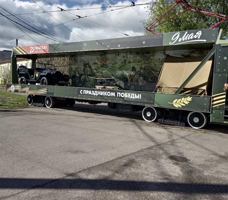8 мая в трамвае маршрута №4, борт которого украшен гвоздиками и георгиевской лентой, с 10:00 до 12:00 будут звучать песни военных лет в исполнении активистов молодежного центра «Новые имена». В салоне размещена фотогалерея героев Великой Отечественной войны. На портале информирования брендированный трамвай будет отмечен георгиевской лентой. Вагон будет ходить по маршрутам - №№ 4, 5, 6 и 7.