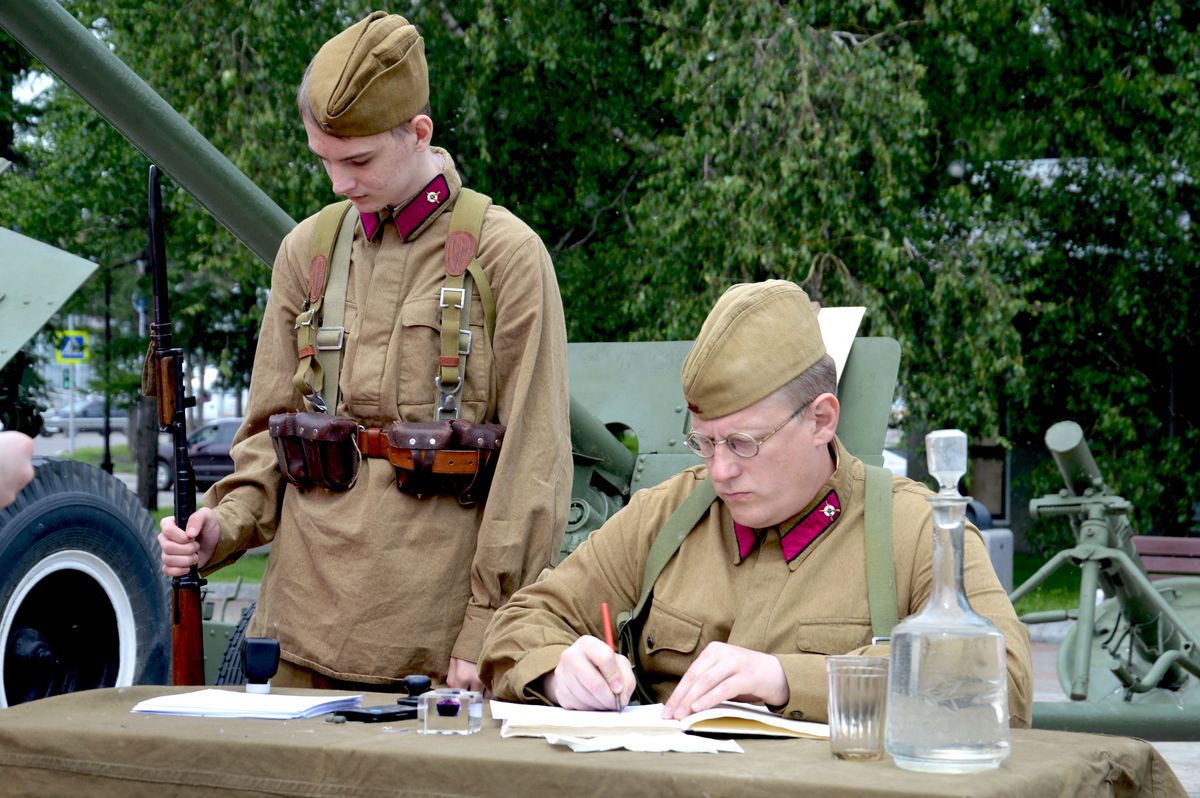 В 19:30 на площади Победы начнётся историческая реконструкция работы призывного пункта.