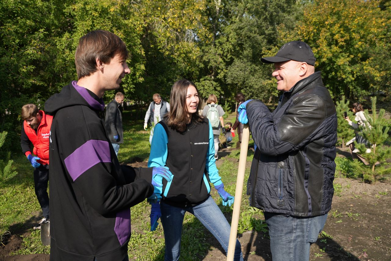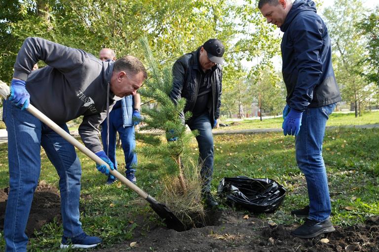 Мэр Владислав Логинов вместе с молодыми красноярцами высадил деревья в сквере «Сибсталь»