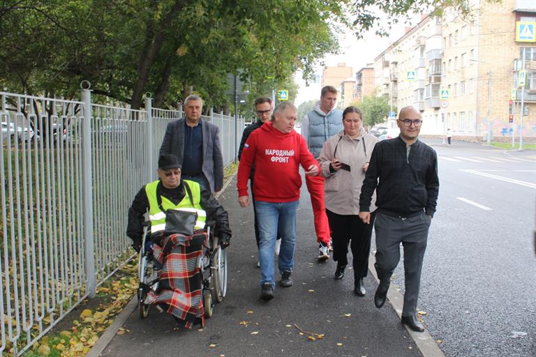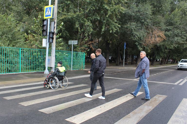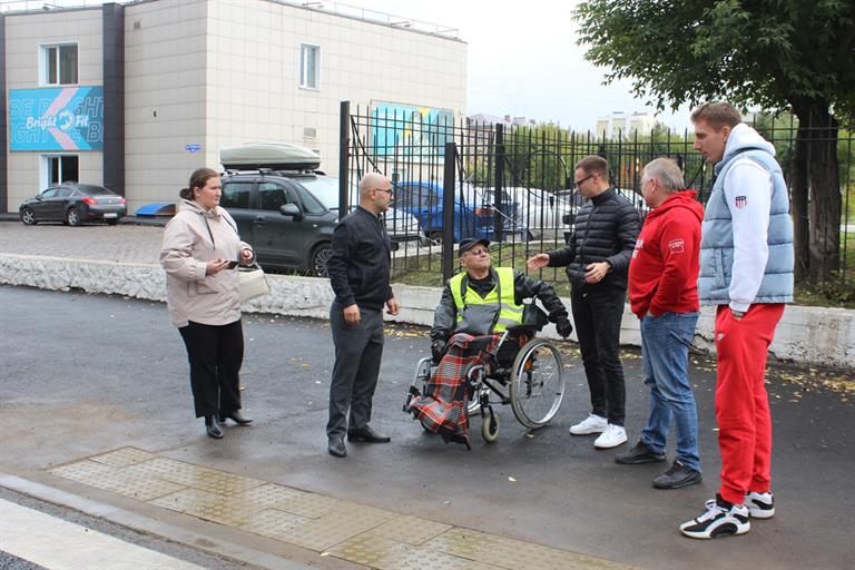 Народные инспекторы вместе с кураторами и подрядчиками прошлись по обеим сторонам улицы и остались довольны результатами проделанной работы. Маломобильный контролер Александр Ткачёв смог самостоятельно проехать весь участок без посторонней помощи, отметив, что улицу действительно можно назвать доступной. Все понижения выполнены плавно без резких перепадов высот, швы в покрытии не ощущаются, в необходимых местах есть тактильная плитка для слабовидящих. Единственное замечание было по территории возле гаражей.