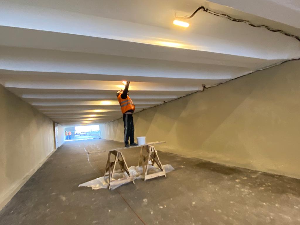 Не обошлось сегодня и без замечаний. В тоннелях с южной и северной сторон путепровода рабочие обновили стены, сейчас завершают отделочные работы. Но двери технических комнат остались неокрашенными, а провода от светильников «черными лианами» повисли на потолке.