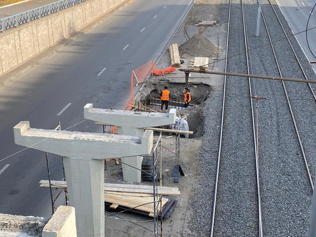 Под виадуком готовится основание для ступеней и площадок лестничных сходов, ведущих с моста к трамвайным остановкам. Их монтаж рабочие планируют начать на следующей неделе. Сами лестницы будут не бетонные, как раньше, а металлические. Это облегчит конструкцию путепровода.