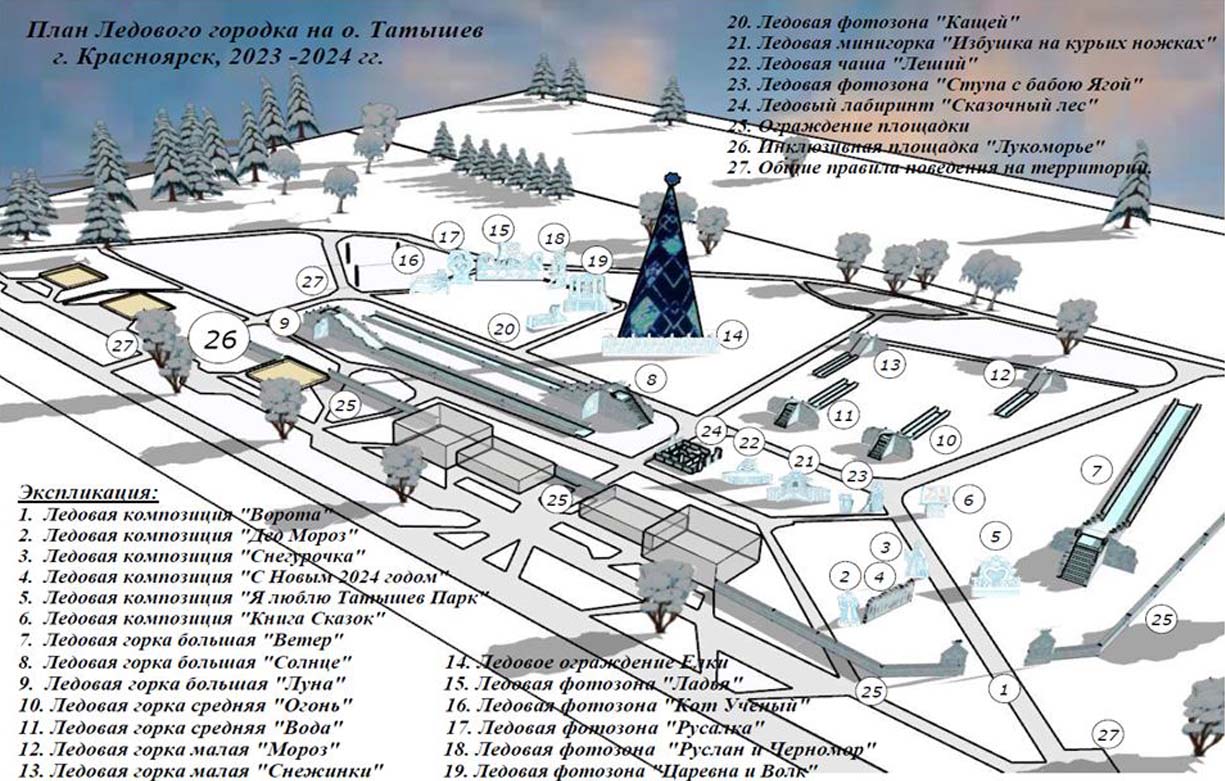 Также на совещании обсуждалась тема организации ледовых городков. На данный момент уже монтируются главная городская ёлка и горки в Татышев-парке. 10 новогодних ёлок планирует установить МАУ «Красгорпарк». К примеру, впервые новогоднее дерево появится в сквере на месте бывшего рынка «Казачий», который благоустраивали в прошлом и текущем годах, а также ещё в 9 местах: