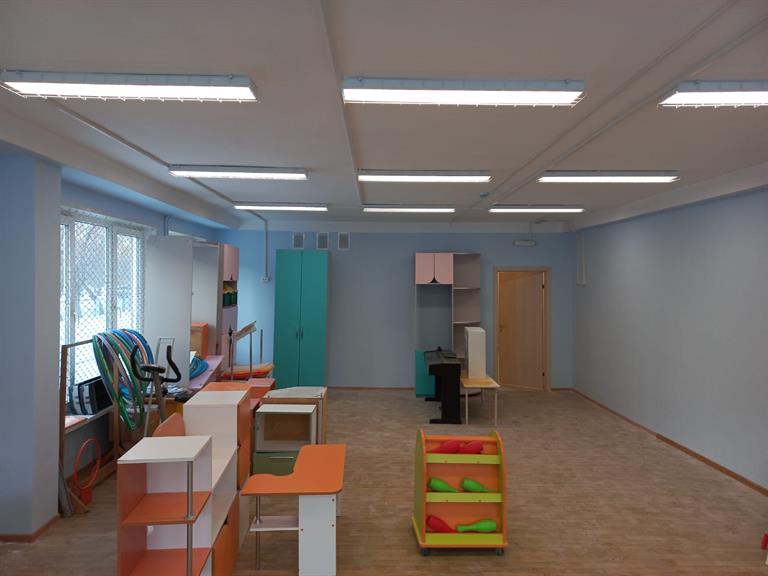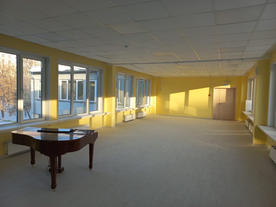 В 2022 году начались работы. За два года рабочие откапиталили подвал и заменили все инженерные системы, отремонтировали кровлю, полы и внутренние помещения, а также музыкальный и спортивный залы, медицинский блок. Кроме того, в здании заменили светильники, установили охранно-пожарную сигнализацию.