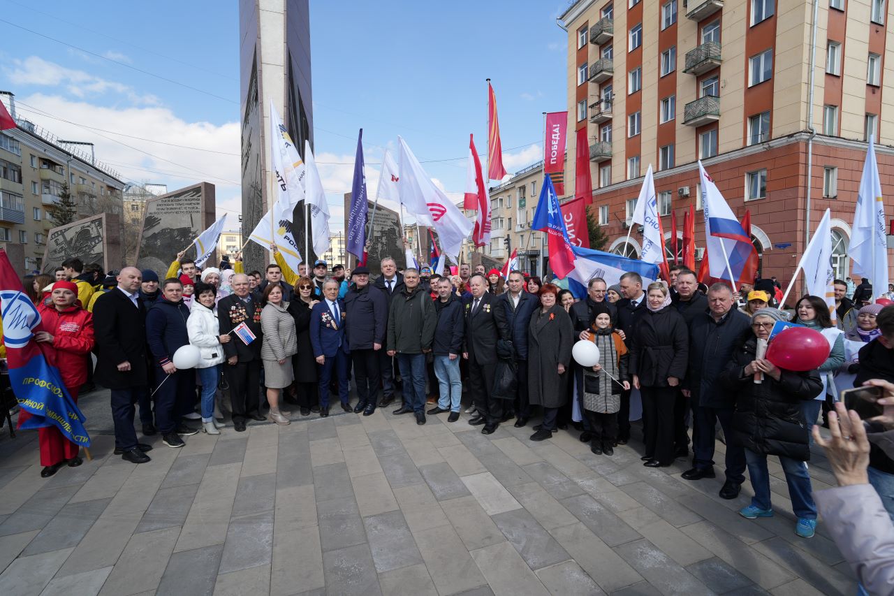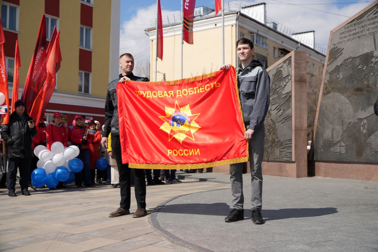 Первомайская встреча горожан состоялась в знаковом месте – на мемориальном комплексе «Красноярск – город трудовой доблести». Он был открыт  7 декабря 2021 года на площади перед ДК имени 1 Мая в память о самоотверженном труде горожан, работавших в годы Великой Отечественной войны на заводах и фабриках, в суровых условиях первых военных лет налаживавших работу эвакуированных предприятий.