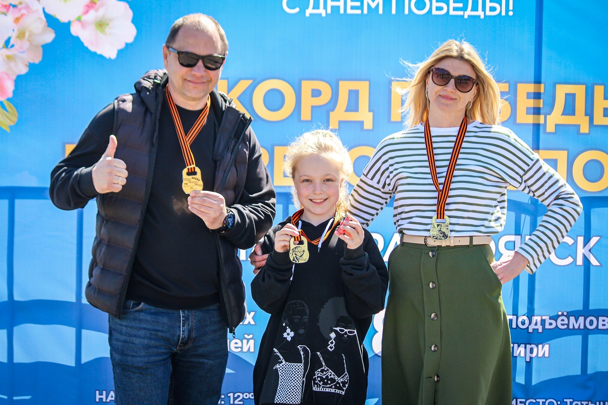 На Центральной набережной в 58-й раз прошла легкоатлетическая эстафета, посвящённая 79-й годовщине Победы в Великой Отечественной войне, а на острове Татышев состоялась традиционная Всероссийская акция по гиревому спорту «Рекорд Победы».